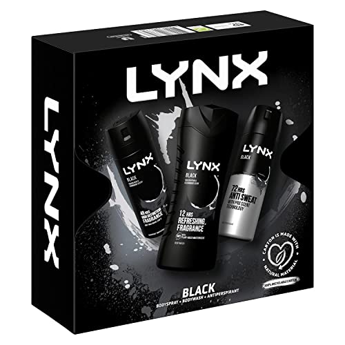 LYNX Black Trio Gift Set For Men Bodyspray 150 ml, Bodywash 225 ml & Antiperspirant 150 ml, Gift For Him, 3.0 count