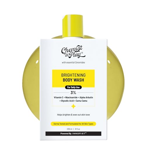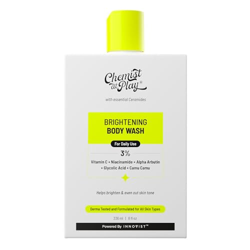 Chemist at Play Brightening Body Wash | Glowing Skin Vitamin C Bodywash | Helps to Reduce Fades Dark Spots, Evens out Skin Tone | Alpha Arbutin | 30X Vitamin C with Camu Camu | For Women & Men | 236ml