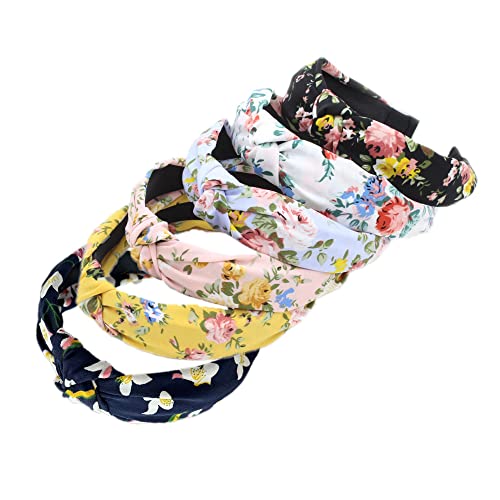 Women's Headbands Boho Hair Band Vintage Elastic Printed Head Wrap Fabric Hair Band Stretchy Moisture Hairband Twisted Cute Hair Accessories (ArchSummerFolwer6)