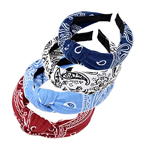 Culinavog 4 Pack Wide Headbands for Women, Boho Fashion Turban Hair Bands, Soft Elastic Head Wraps for Daily Wear, Sports, Yoga – One Size Fits Most Ladies