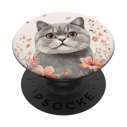 Floral Boho British Short Hair BKH Botanical Flower Cat PopSockets Adhesive PopGrip