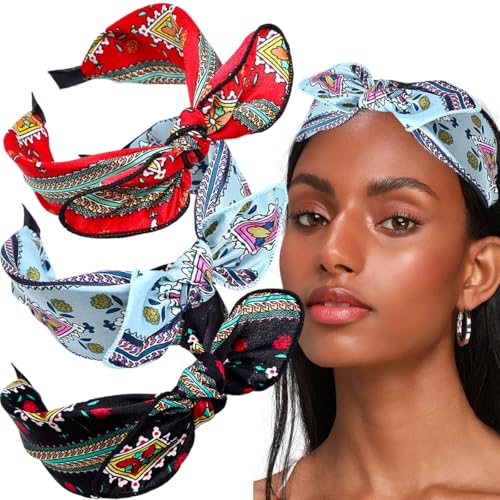 3 PCS Rabbit Ears Headbands Boho Wide Hair Bands Elastic Twist Hair Hoop Wide Twisted Headband Fabric Knotted Hair Band Retro Style Hair Accessories for Women Girls