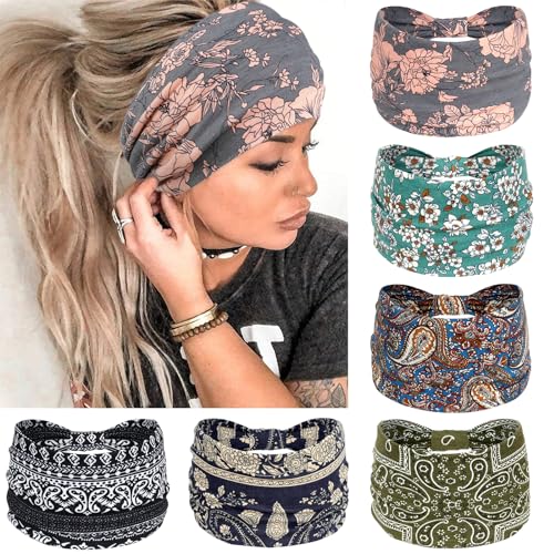 Loiluliy Headbands for Women's Hair, 6 Pcs Boho Elastic Hair Bands Thick Head Bands - Wide, Soft and Non-Slip Hair Accessories for Sports, Gym, Running, Yoga, Makeup and Everyday Fashion