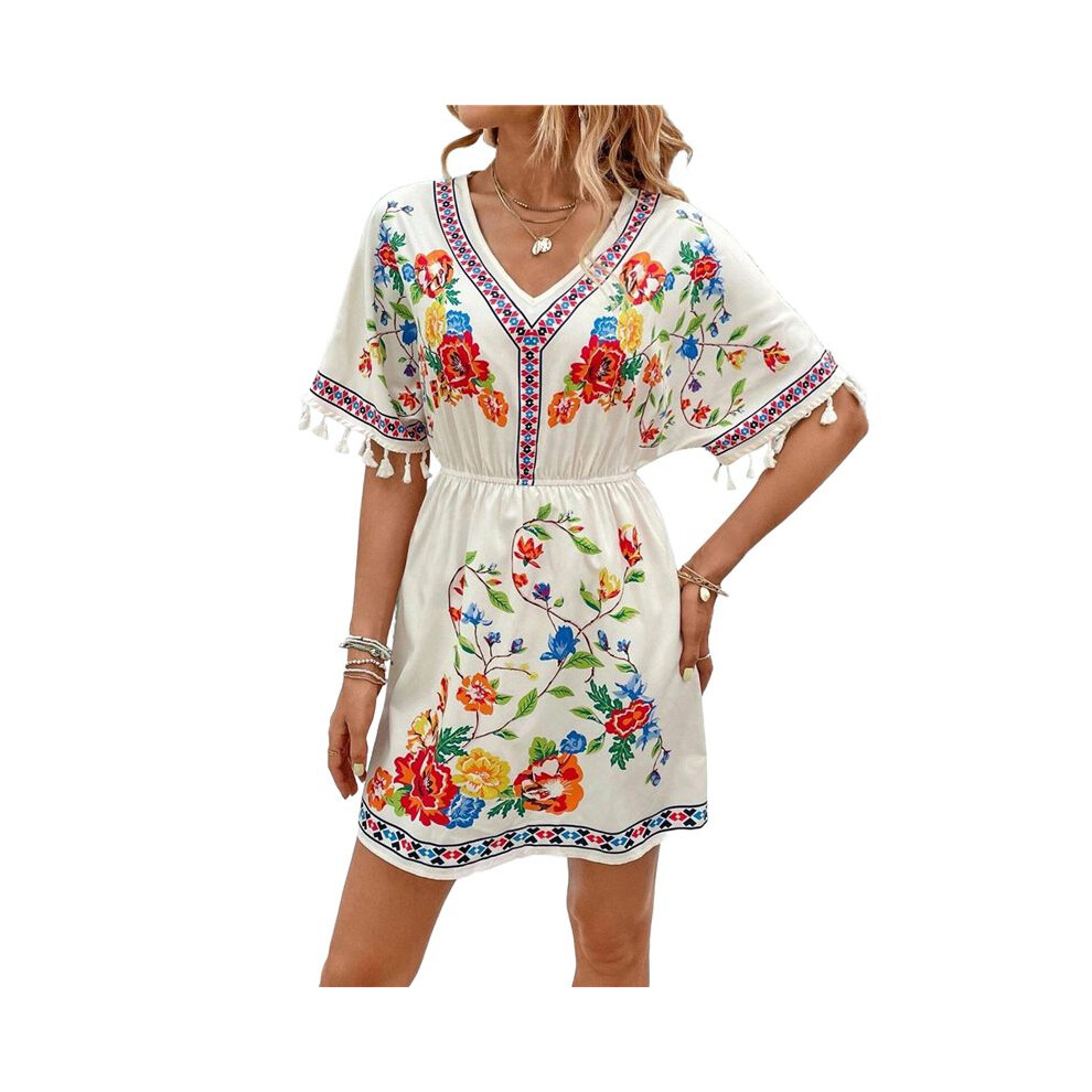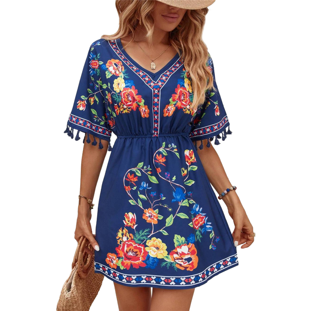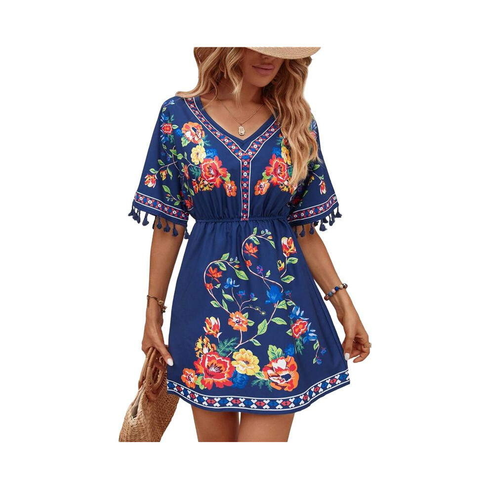 Zeagoo Womens Beach Dress Boho Floral Summer Dresses V Neck Casual Bohemian Short Dress for Ladies XL