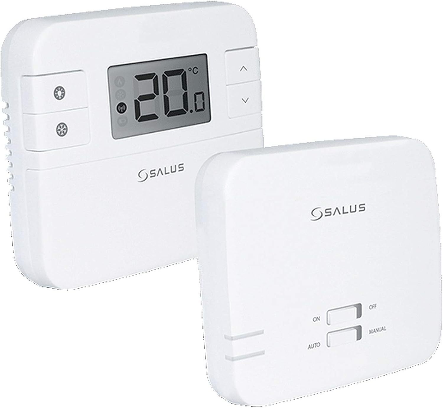Salus RT310RF Wireless Thermostat - Non Programmable Digital Room Thermostat with RF Receiver, Easy to Install Heating Control for Boiler, Volt Free & 230V, 30m Range
