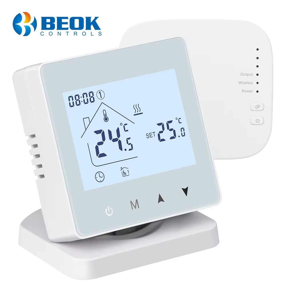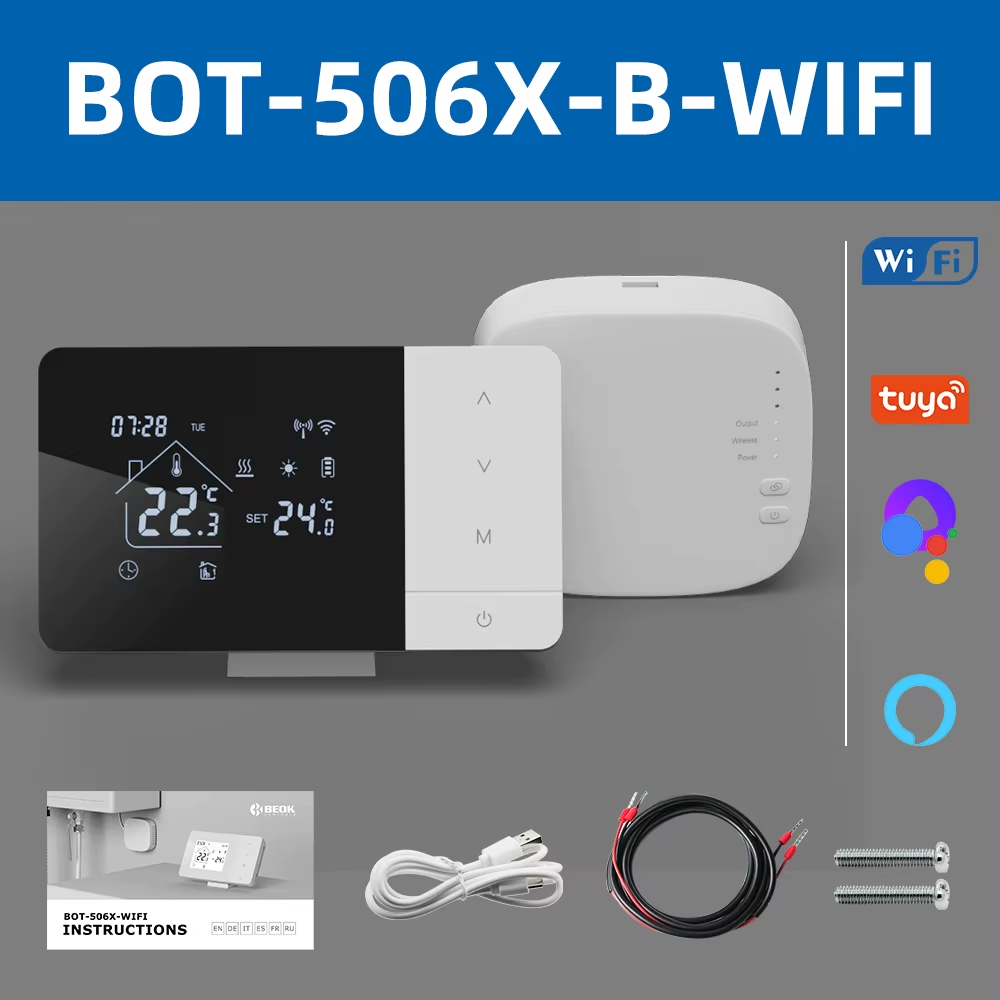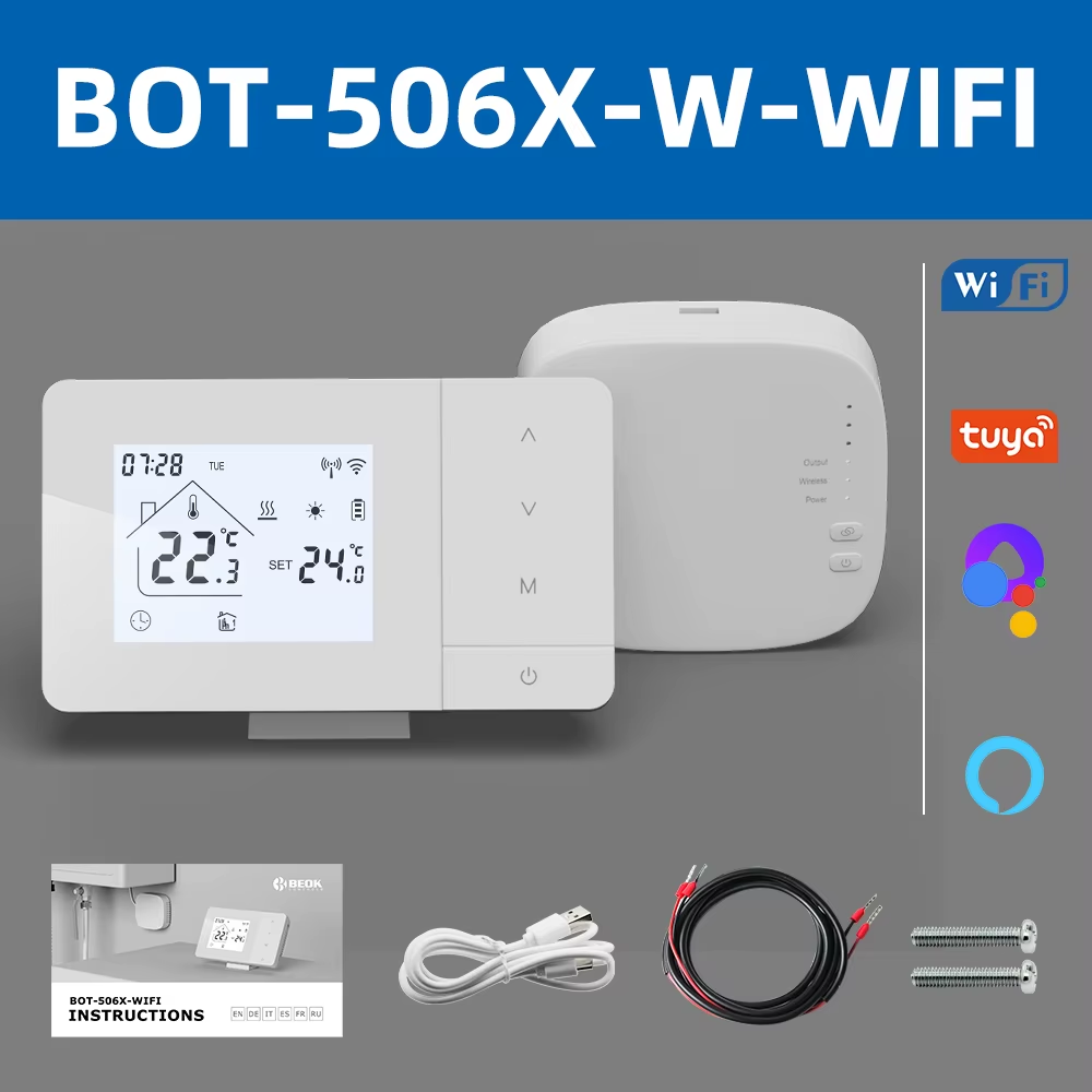 Beok Smart Thermostat for Gas Boiler and Water Underfloor Heating, Tuya Wireless Room Thermostat Central Heating Touch Screen, Compatible with Alexa Google Assistant, Battery Operated, BOT-R3X-WIFI
