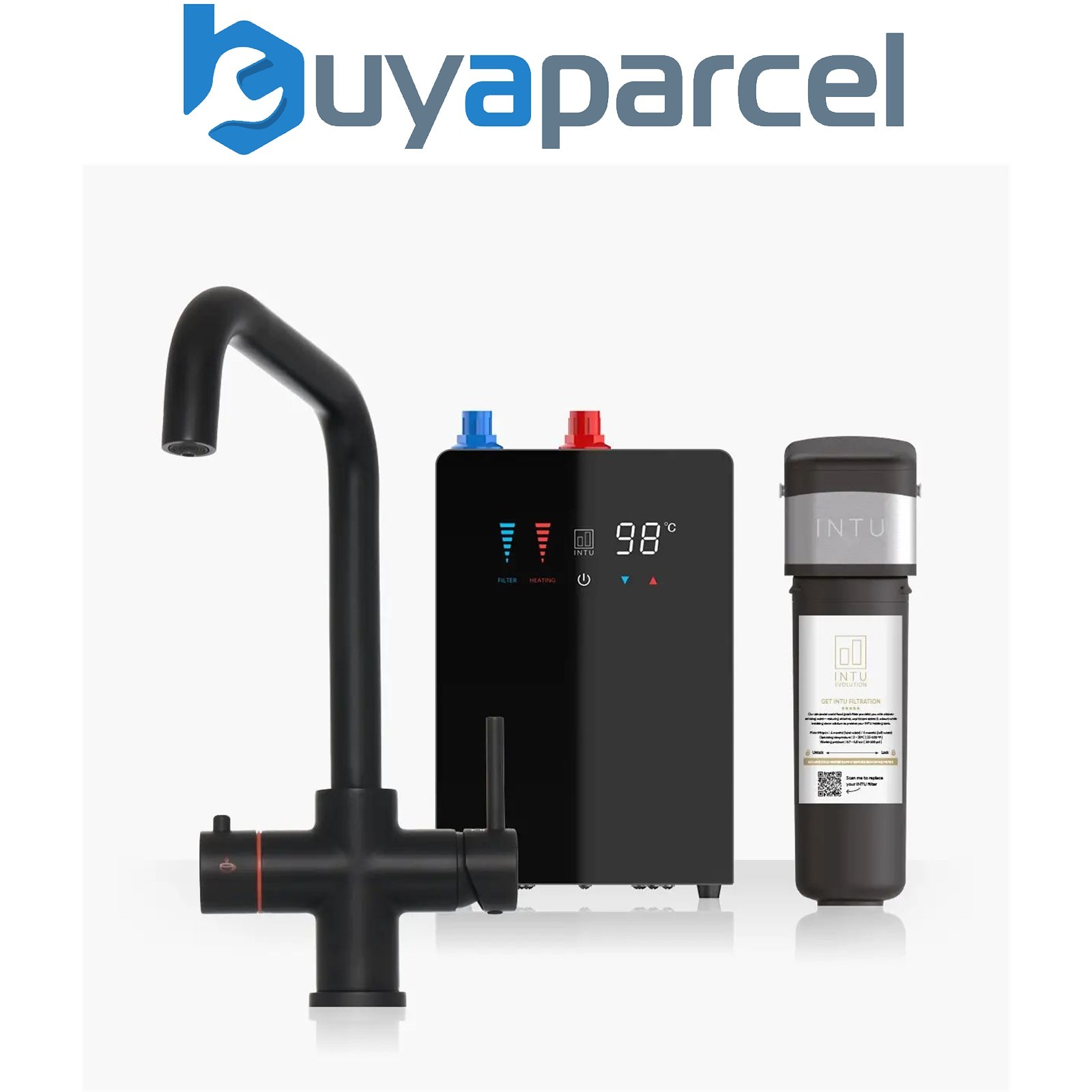 INTU 4OUR Matt Black 4 In 1 Square Filtered Boiling Hot Water Tap Nexus & Pro Fi