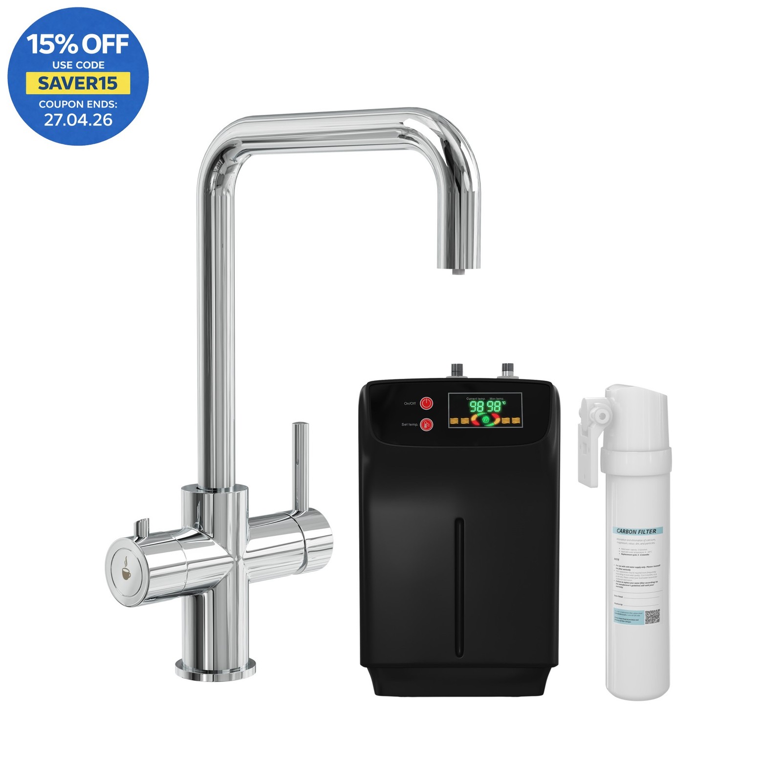 Ells Flow Instant Boiling Water Kitchen Tap Includes Tap, Boiler Digital Filter