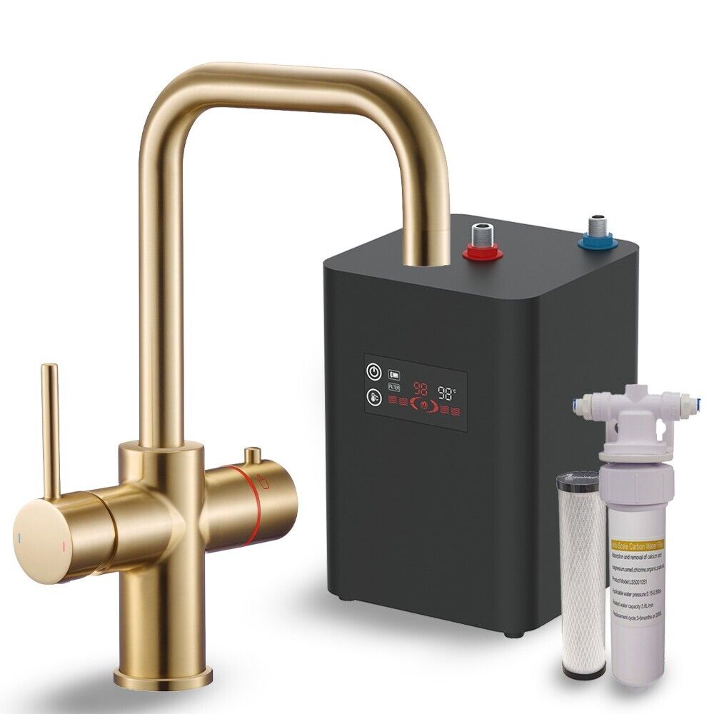 Brushed Brass 4-in-1 Instant Boiling Hot Water Kitchen Tap - Complete Kit