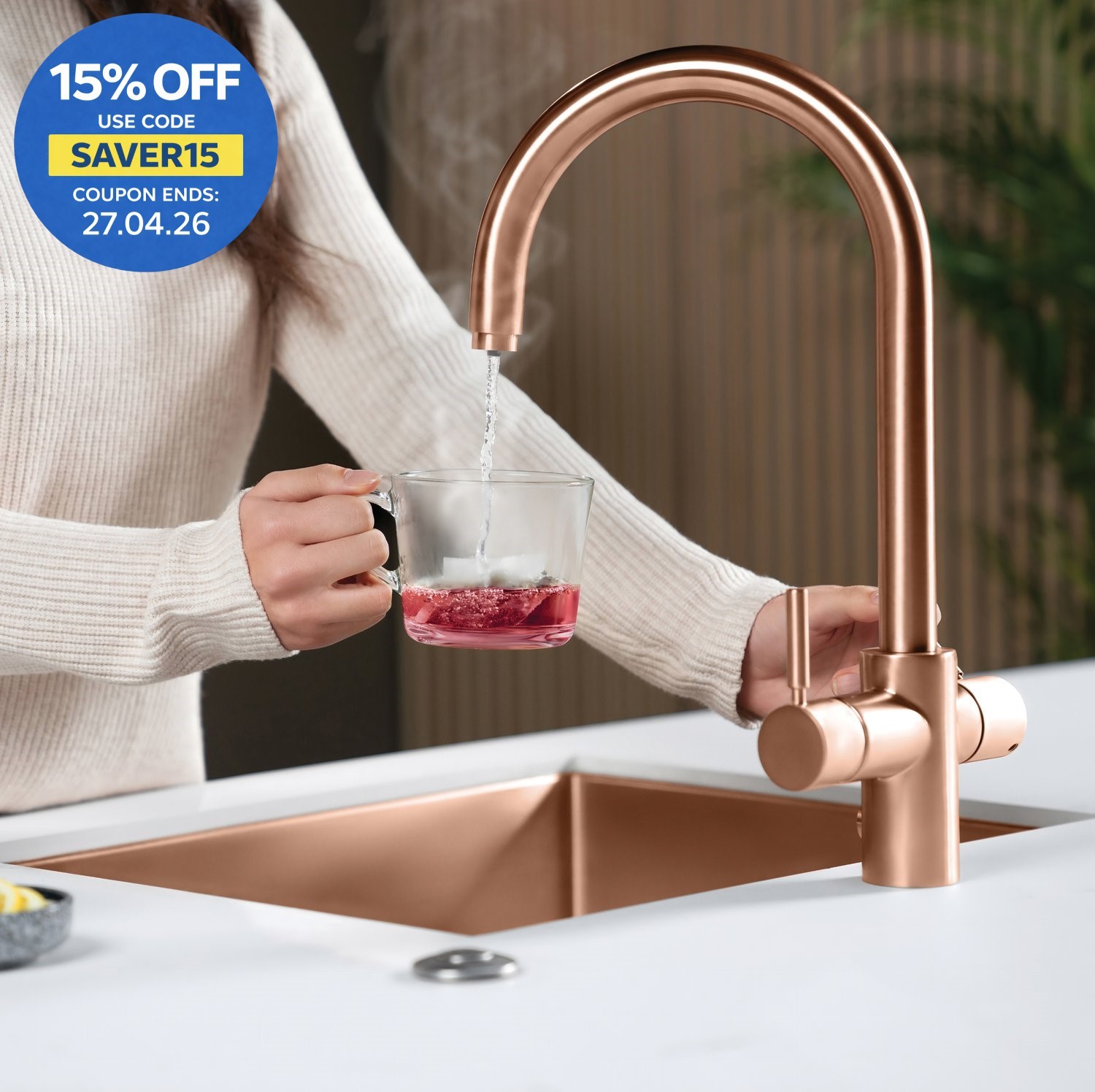 INTU 4OUR Brushed Copper 4 In 1 Square Filtered Boiling Hot Water Tap Nexus & Pr