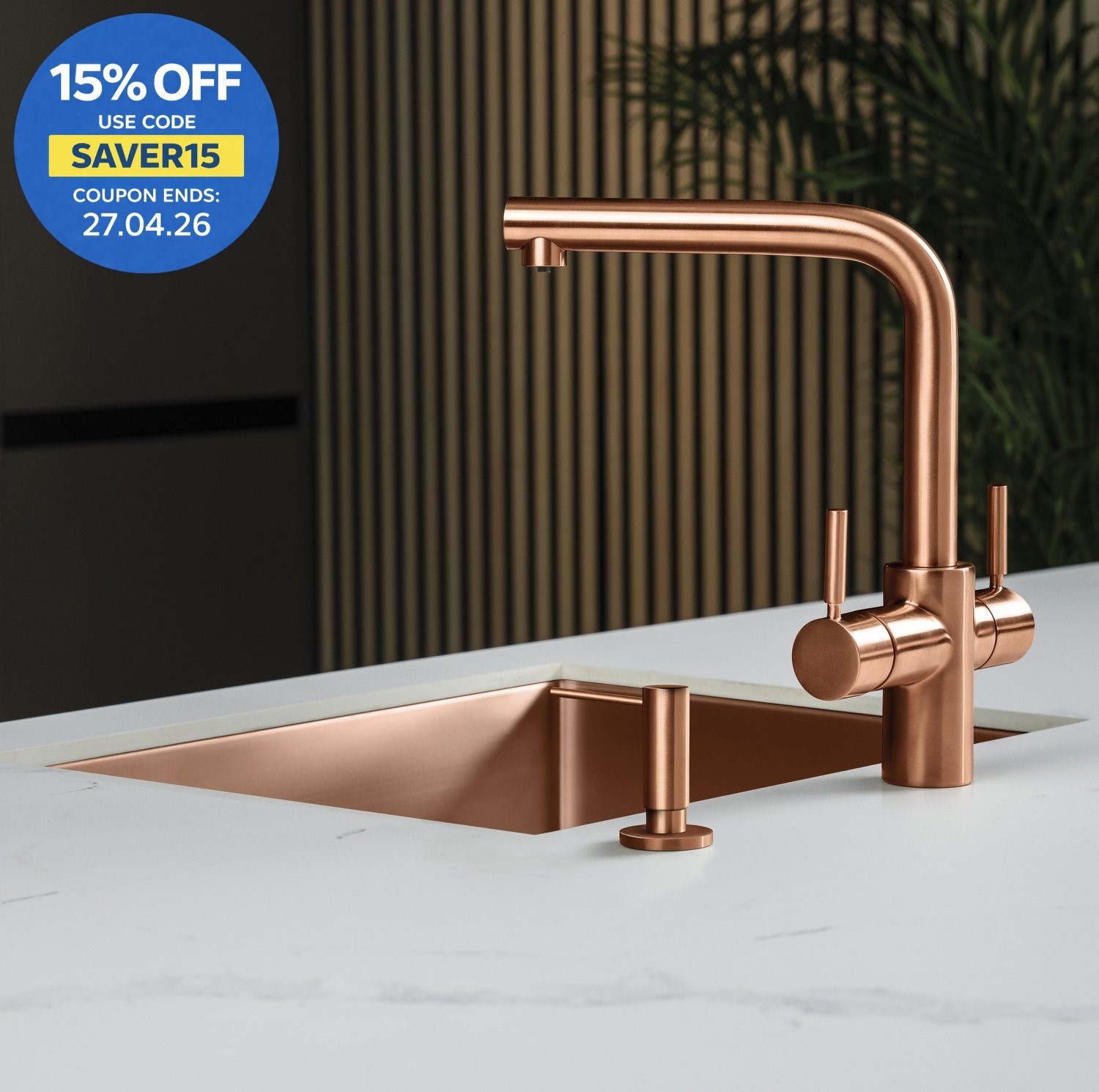 Liquida EBT311CP 3-In-1 Brushed Copper Instant Boiling Hot Water Kitchen Tap