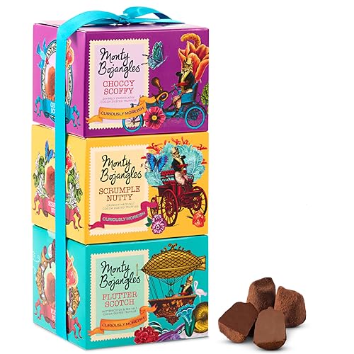 Monty Bojangles Cocoa Dusted Truffles Gift Tower (3 x 100g Pack)- 3 Luxury Chocolate Truffle Boxes - Choccy Scoffy, Scrumple Nutty & Flutter Scotch- The Perfect Chocolate Gift Box Selection