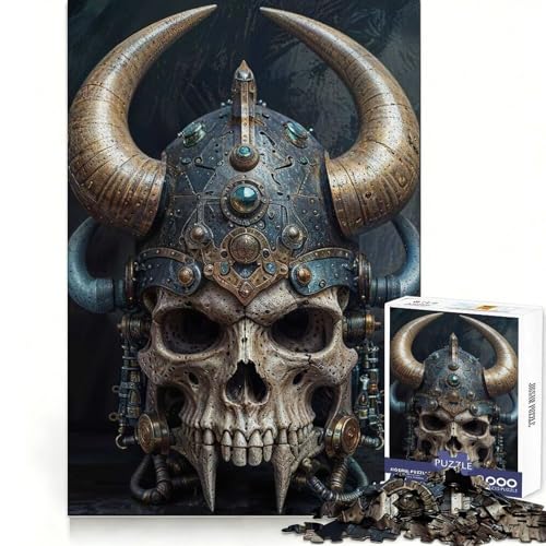Bold Nordic Warrior Skull Jigsaw Puzzles 1000 Pieces for Adults Smart Challenge Peaceful Escape Fine Lock Ideal Present (50X75CM)