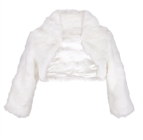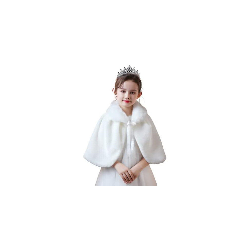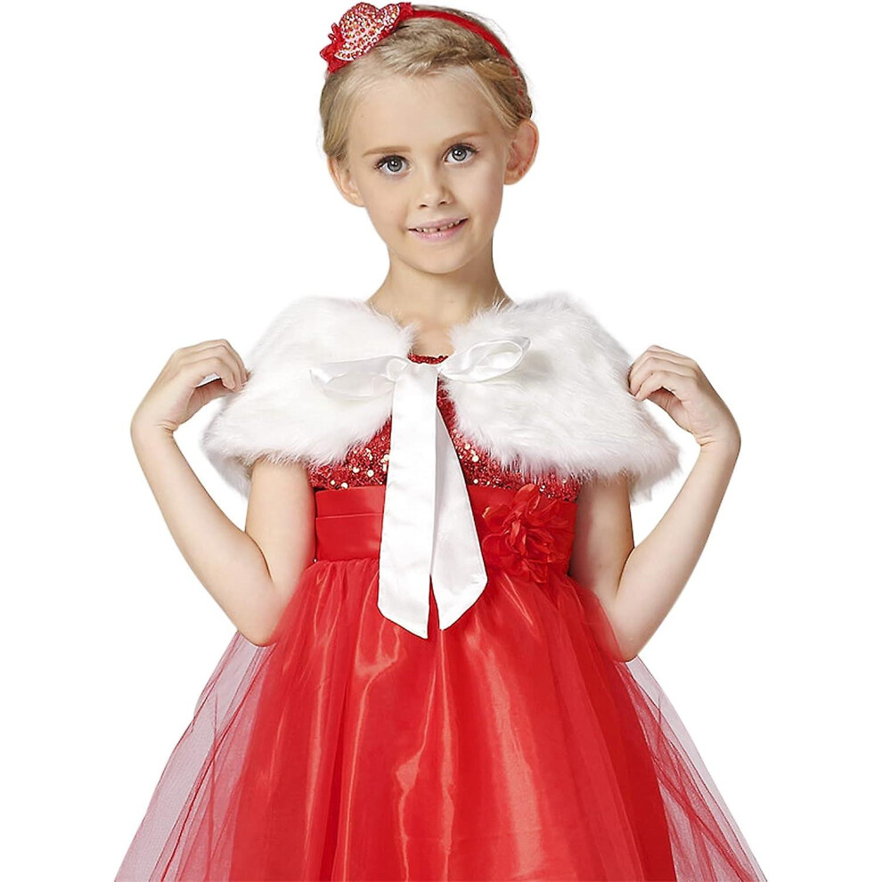 (White) Girls Faux Fur Bolero Wrap Shawl Soft Fluffy Dress Cape Pretty Flower Girls Wedding Shrug Winter Warm Plush Jacket Coat