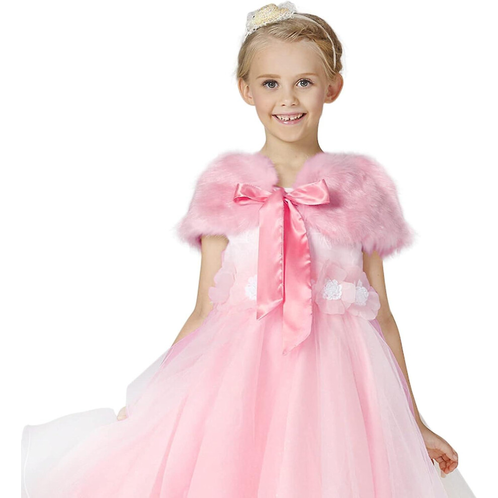 (Pink) Girls Faux Fur Bolero Wrap Shawl Soft Fluffy Dress Cape Pretty Flower Girls Wedding Shrug Winter Warm Plush Jacket Coat