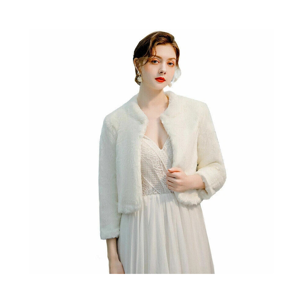 (S) Women Bridal Faux Fur Bolero Shrug Jacket Wrap Shawl Wedding Evening Party