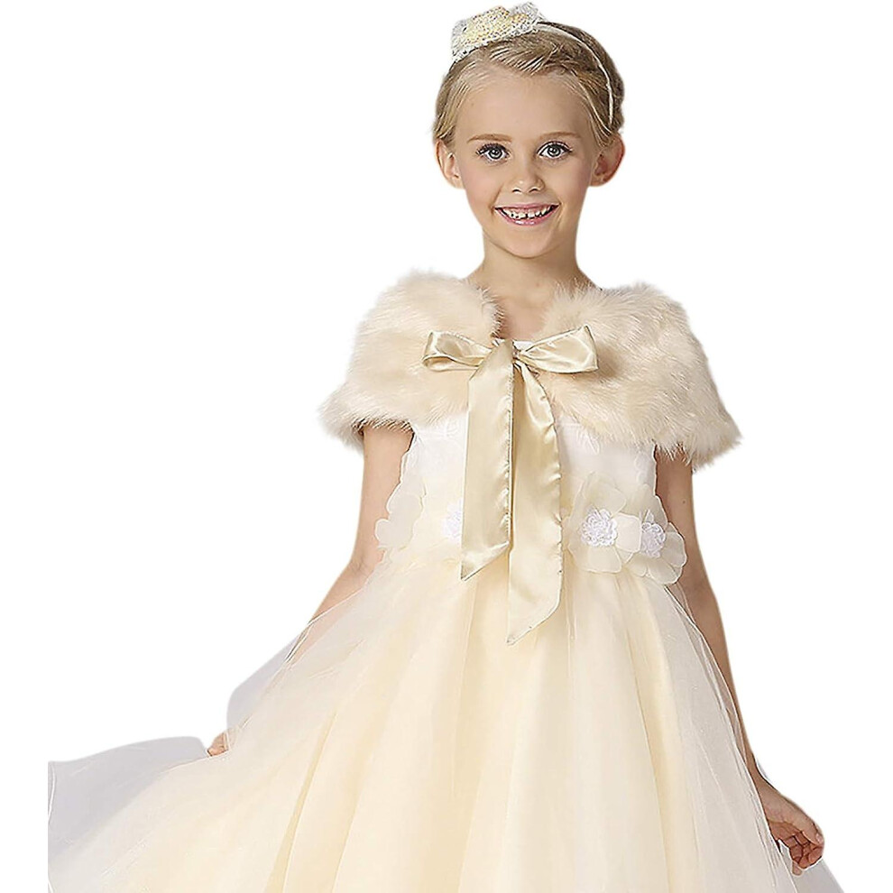 (Champagne) Girls Faux Fur Bolero Wrap Shawl Soft Fluffy Dress Cape Pretty Flower Girls Wedding Shrug Winter Warm Plush Jacket Coat