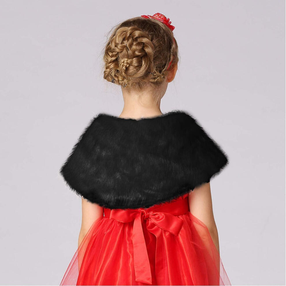 (Black) Girls Faux Fur Bolero Wrap Shawl Soft Fluffy Dress Cape Pretty Flower Girls Wedding Shrug Winter Warm Plush Jacket Coat
