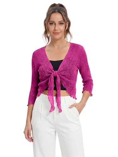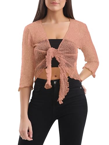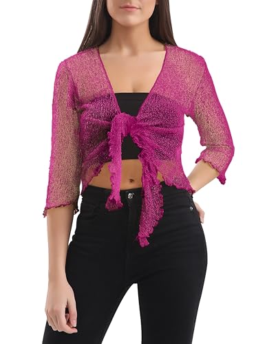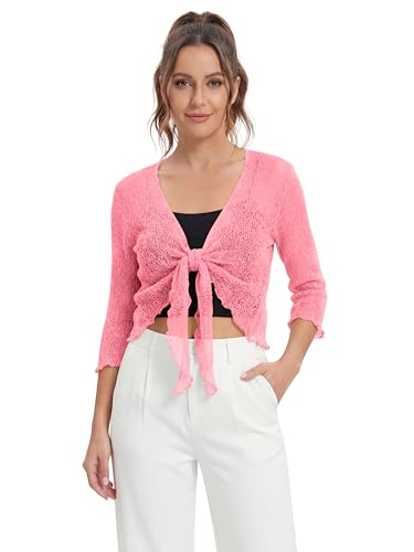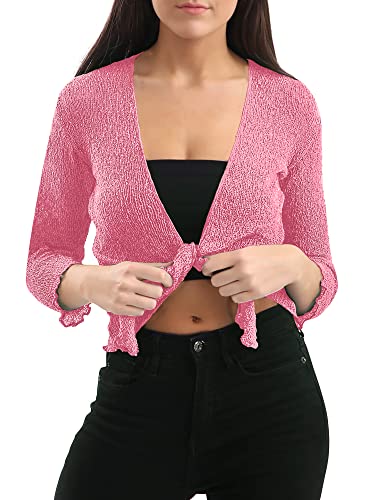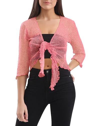 Love My Fashions® Women’s Fish Net Knitted Tie Up Bolero Shrug Top Ladies 3/4 Sleeve One Size Fits All Rose Pink