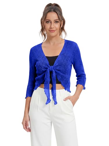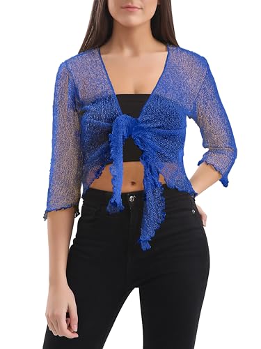 Love My Fashions® Women’s Fish Net Knitted Tie Up Bolero Shrug Top Ladies 3/4 Sleeve One Size Fits All Royal Blue
