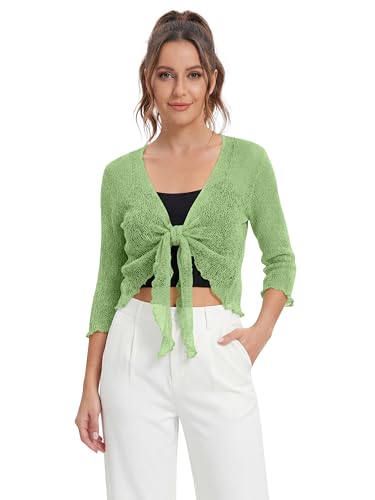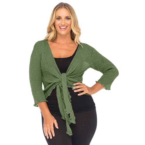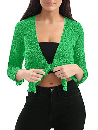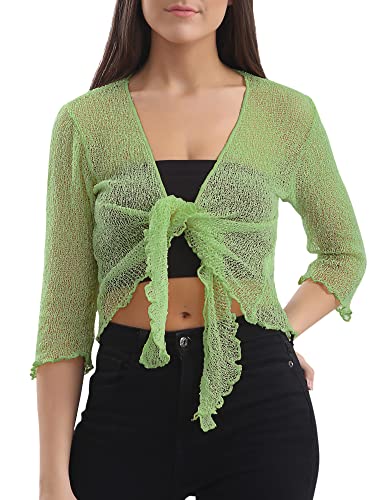 Love My Fashions® Women’s Fish Net Knitted Tie Up Bolero Shrug Top Ladies 3/4 Sleeve One Size Fits All Apple Green
