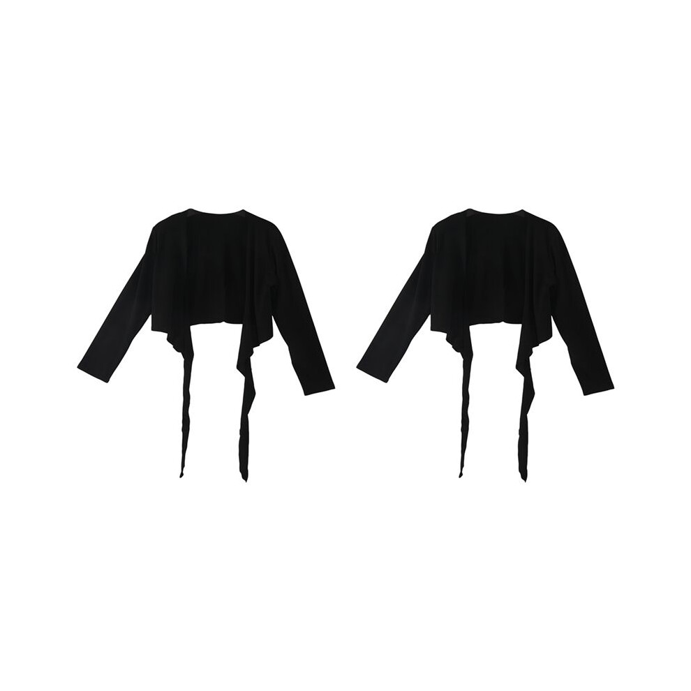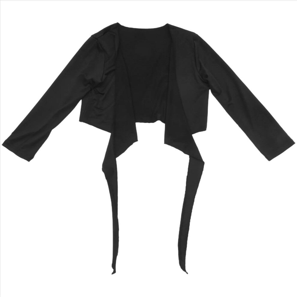 2X Ladies Long Sleeve Tie Crop Shrug Womens Wrap Bolero Cardigan Top - Black