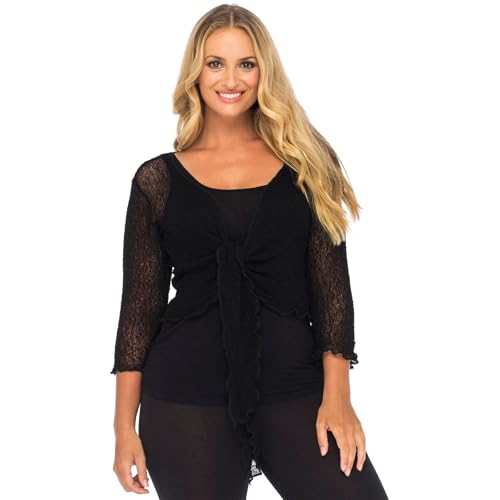 Love My Fashions® Women’s Fish Net Knitted Tie Up Bolero Shrug Top Ladies 3/4 Sleeve One Size Fits All Black