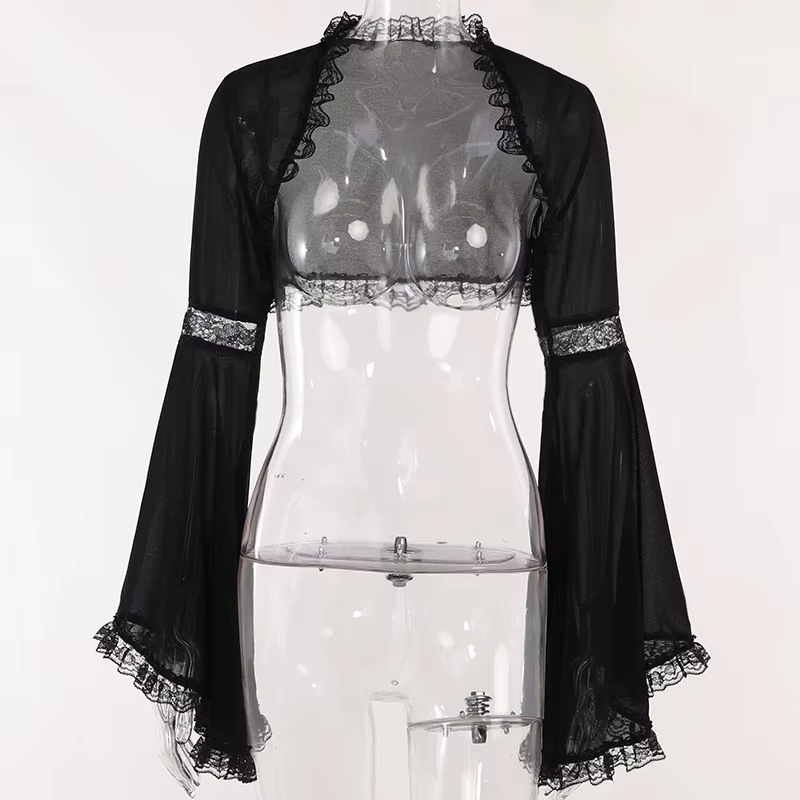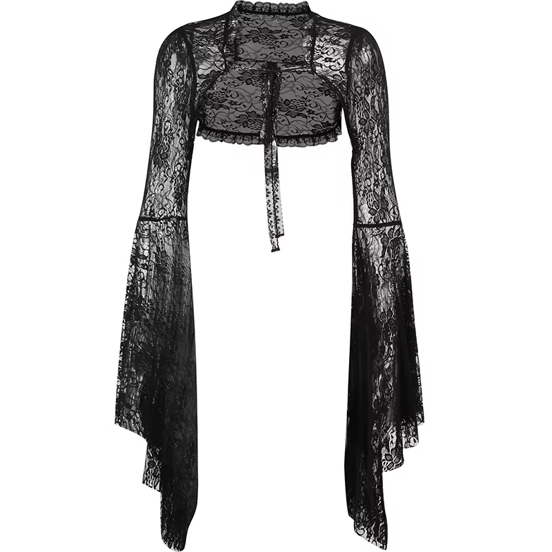 Punk Bolero Shrug Top Trad Goth Black Shawls Flared Sleeve Cover Wraps for Eveni