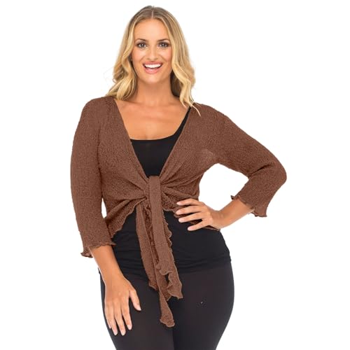 NetSetUK Women’s Fish Net Tie Up Shrug 3/4 Sleeve Fine Knitted Ladies Bolero Shrug Top Jacket Cardigan One Size Dark Brown