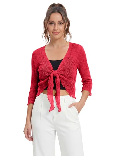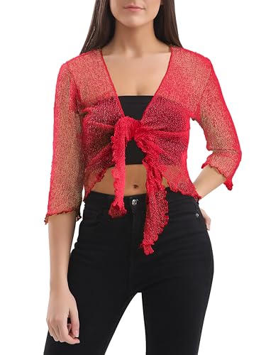 Love My Fashions® Women’s Fish Net Knitted Tie Up Bolero Shrug Top Ladies 3/4 Sleeve One Size Fits All Red