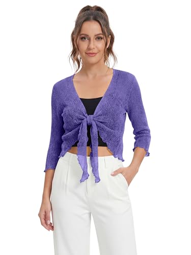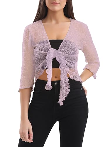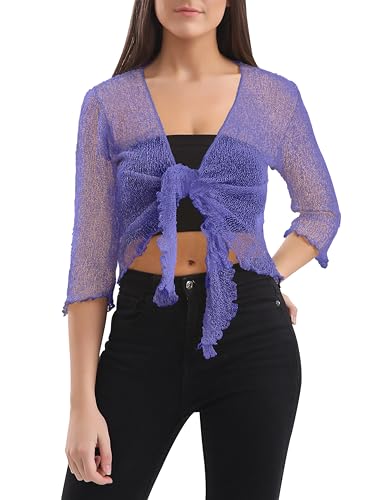 Love My Fashions® Women’s Fish Net Knitted Tie Up Bolero Shrug Top Ladies 3/4 Sleeve One Size Fits All Purple