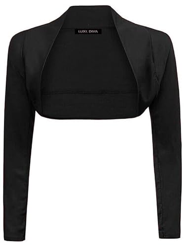 LUXE DIVA Womens Plain Long Sleeve Bolero Shrug Crop Top – Ladies Cropped Cardigan Knitted Shrug Top for Casual, Party or Evening, Wear UK Sizes 8-26 Black