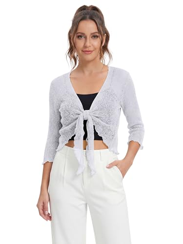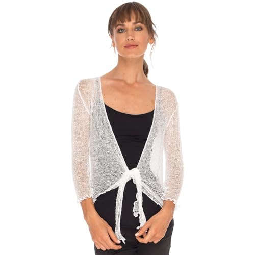 Love My Fashions® Women’s Fish Net Knitted Tie Up Bolero Shrug Top Ladies 3/4 Sleeve One Size Fits All White