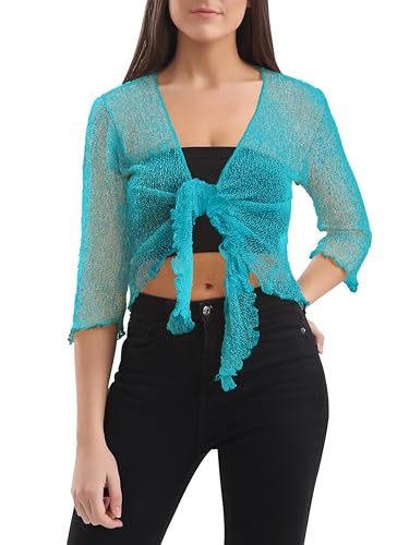 Love My Fashions® Women’s Fish Net Knitted Tie Up Bolero Shrug Top Ladies 3/4 Sleeve One Size Fits All Turquoise