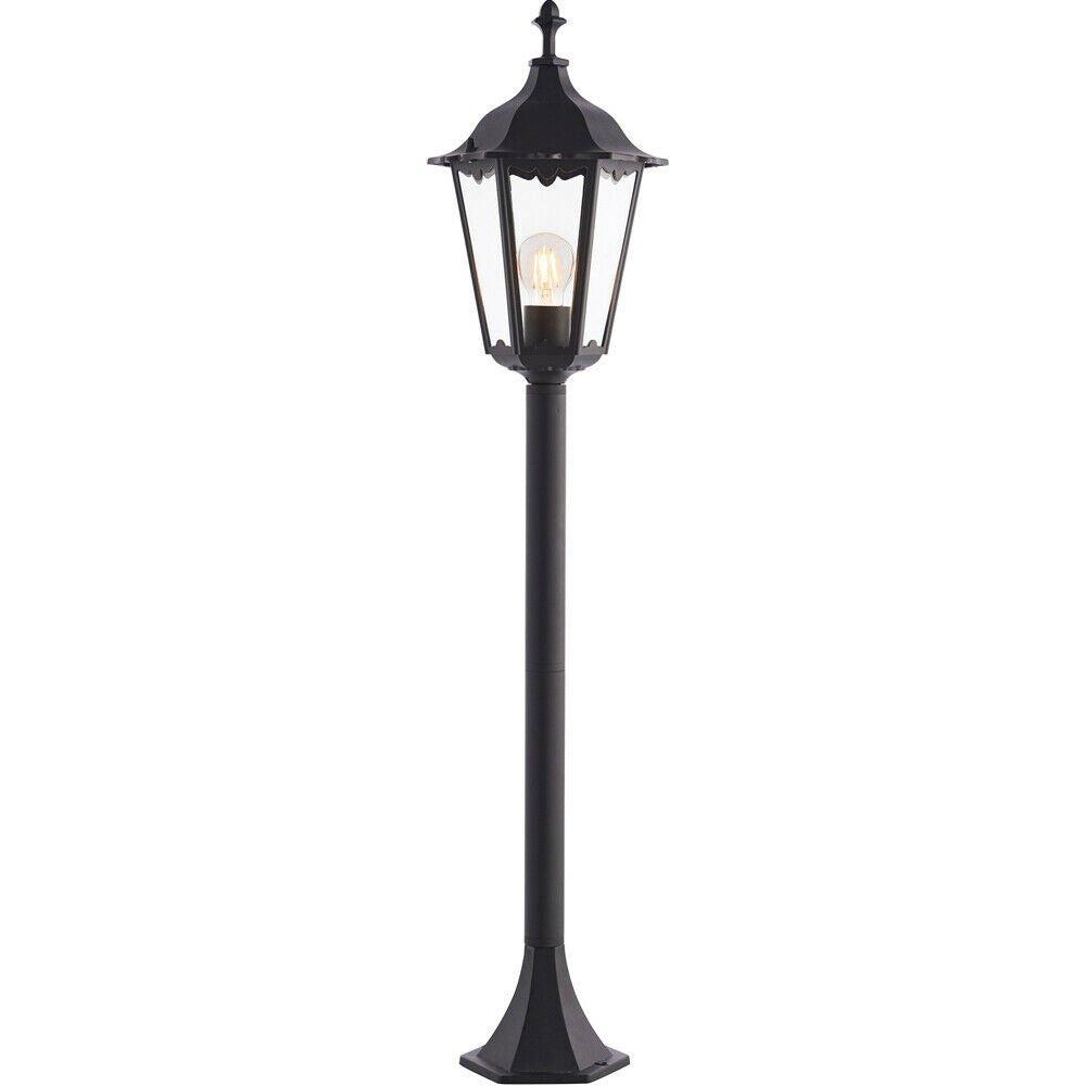 Outdoor Lamp Post Lantern Bollard Light Matt Black & Glass 1m Tall Garden LED