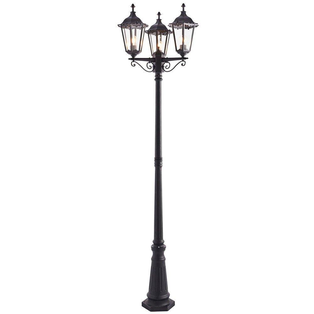 Outdoor Lantern Lamp Post Matt Black & Glass 2.3m Tall 3 Light Garden Bollard