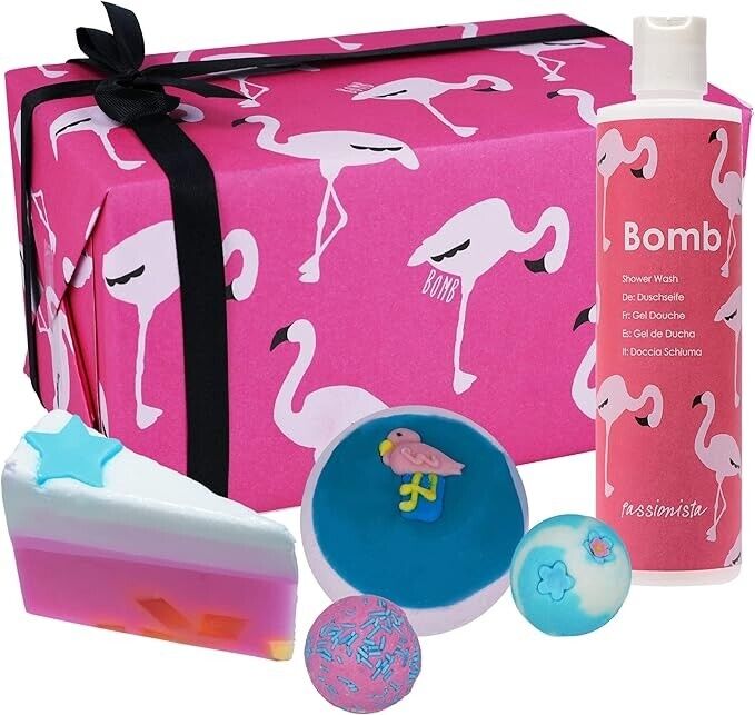 Bomb Cosmetics Lets Flamingle Flamingo 5 Piece Bath Body & Shower Gift Pack 500g