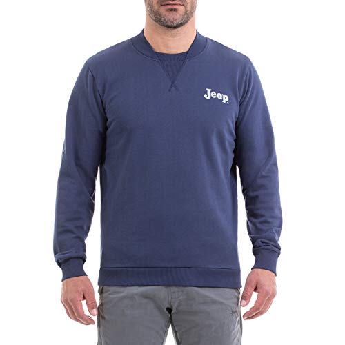 Jeep Winter Crew Neck with Bomber Cut Collar and Vintage Logo Printing, Men's Jersey, Mood Indigo/Light Gr, S