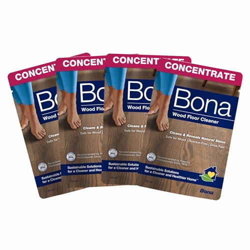 Bona Wood Floor Cleaner Liquid, 60ml Concentrate Refill Pouch, for Varnished or Hard-Waxed Wood Floors, Pack of 4x60ml, 4 Litre Refill