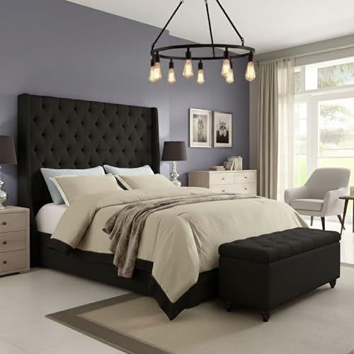 BONANZA SLEEP Chesterfield Sleigh Bed Frame | Plush Velvet Upholstered |Ottoman Gas Lift Storage & Mattress (Black Plush, King 5FT Without Storge & Without Mattress)