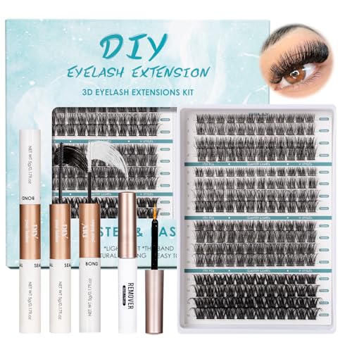 Cluster Lashes Kit 144pcs Eyelashes Individual Kit Natural Eyelash Clusters 8-18mm Lash Clusters D Curl Lash Extension Kit with Bond and Seal Lash Glue Lash Remover Easy to Apply at Home