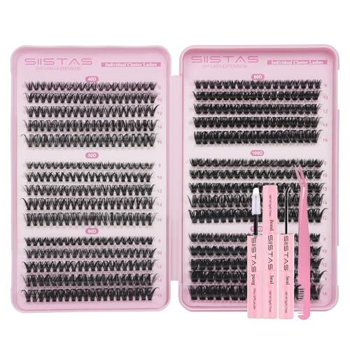 SIISTAS Individual Eyelashes Wispy Lash Clusters Kit 560PCS Natural Eyelashes 8-16mm D Curl Fluffy Lashes Kit with Russian Cluster Lashes Glue Bond and Seal and Lash Tweezers(40+50+60+80+100+120)