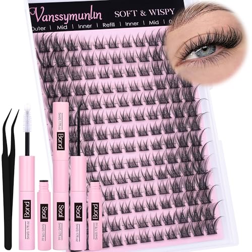 Eyelashes Wispy Lashes Individual Cluster Lashes Kit 154pcs Lash Clusters CD Curl Natural False Eyelashes Individual Kit 8-16mm Eyelash Clusters With Tweezers, Bond and Seal Lash Glue by Vanssymunlin