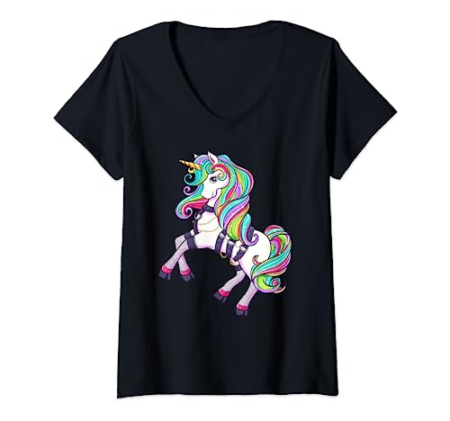 Womens BDSM Unicorn Funny Rope Bondage Humor Cartoon Comic BDSM V-Neck T-Shirt