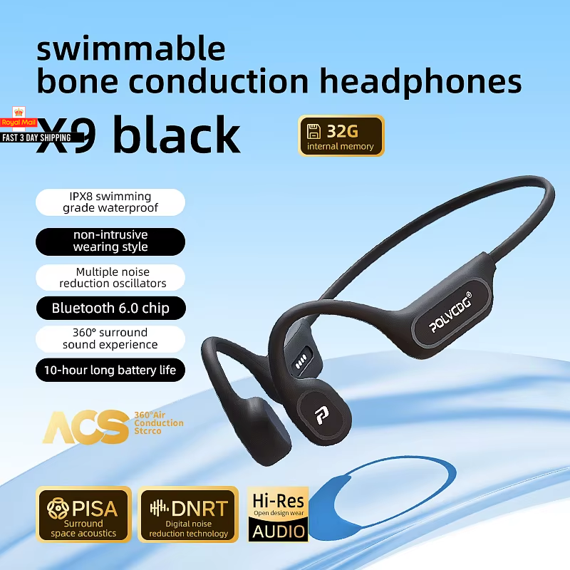 POLVCDG X9 Bone Conduction Earphones IPX8 Waterproof Open Swimming Earphones 32G