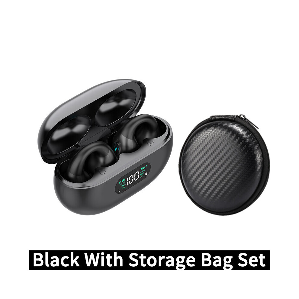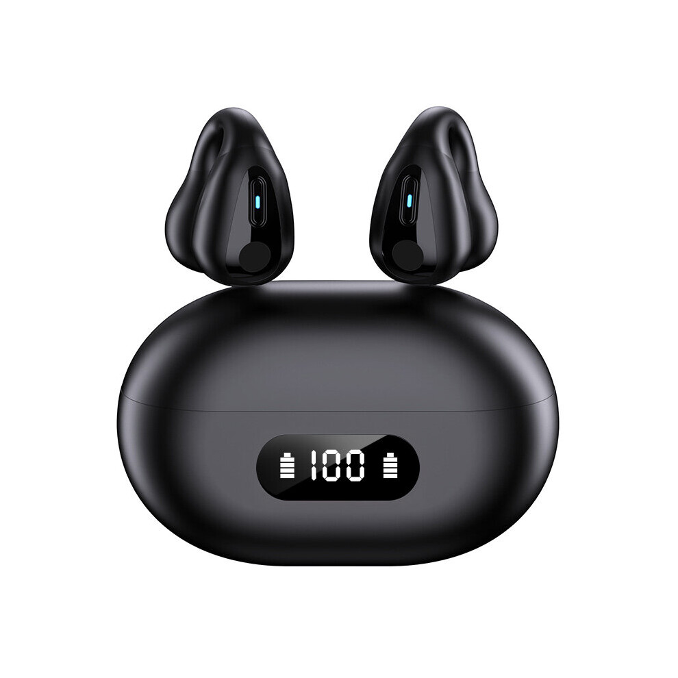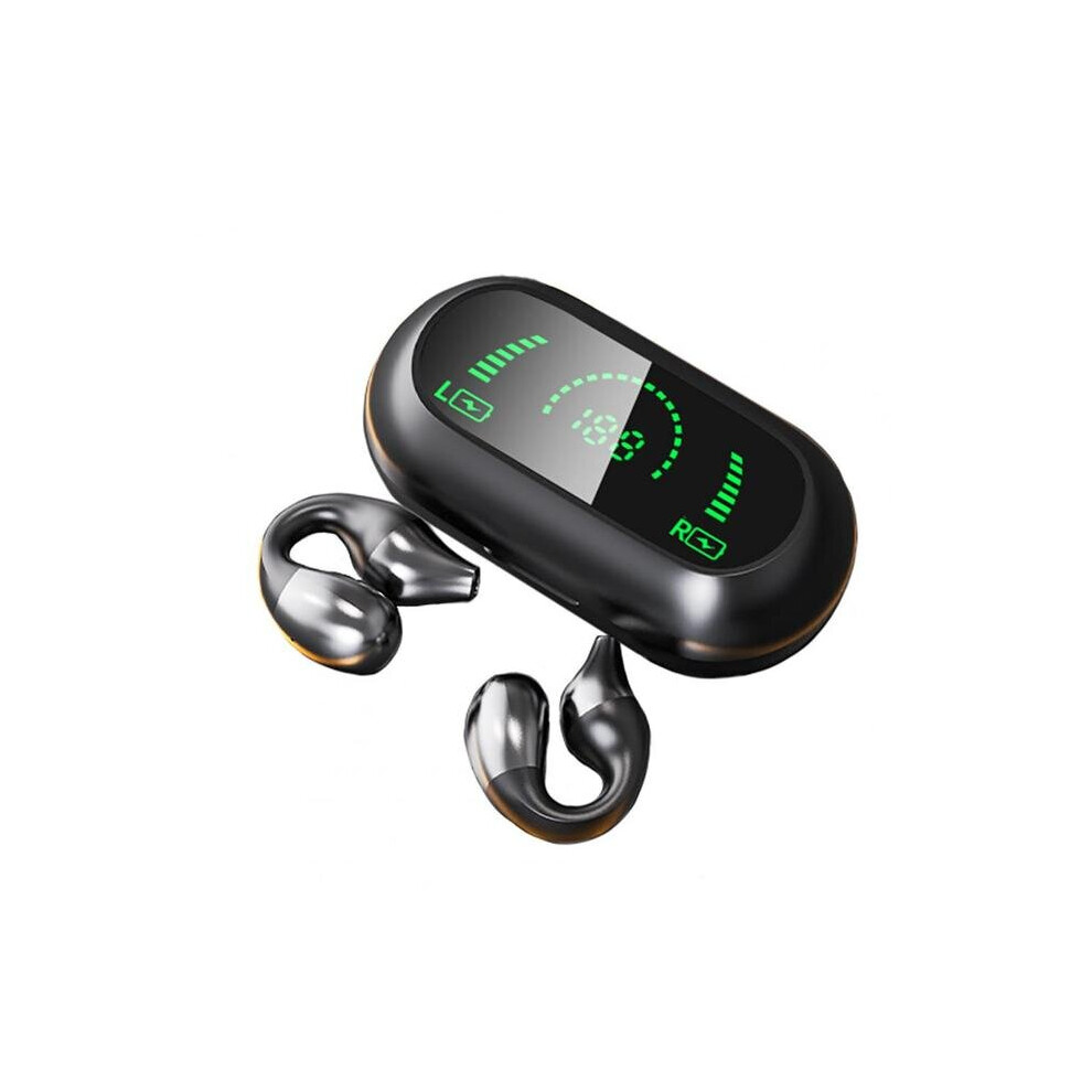 (a-Black) New TWS Wireless Headphones Bluetooth 5.3 Bone Conduction Earphones Earclip Design Touch Control LED Earbuds Sports Headset
