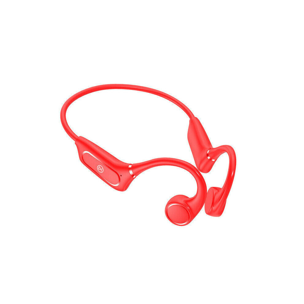 (a-Red) Bone Conduction Earphones Wireless Bluetooth Headphones Surround Sound Stereo Earbuds Sports Waterproof Headsets With Microphone