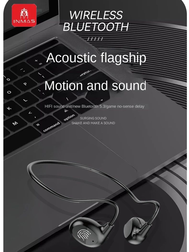 INMAS Wireless AIR BONE Bluetooth Earbuds Neck-Mounte Headphones Ear-Hook Headset Bone Conduction Waterproof sports Earphones