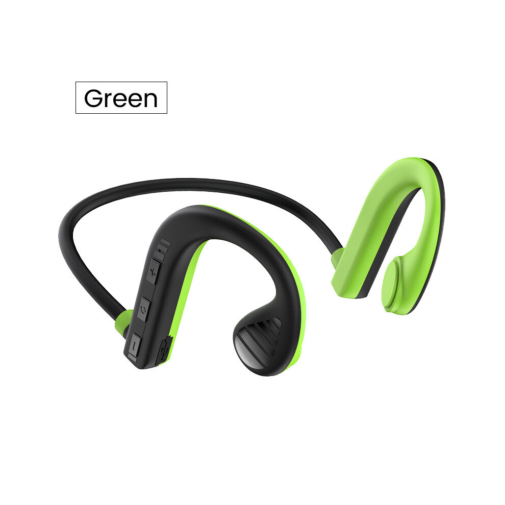 (a-Green) Sport Wireless Bluetooth Headphones Surround Sound Bone Conduction Earphones Waterproof Sport Noise Reduction Earbuds Earphone