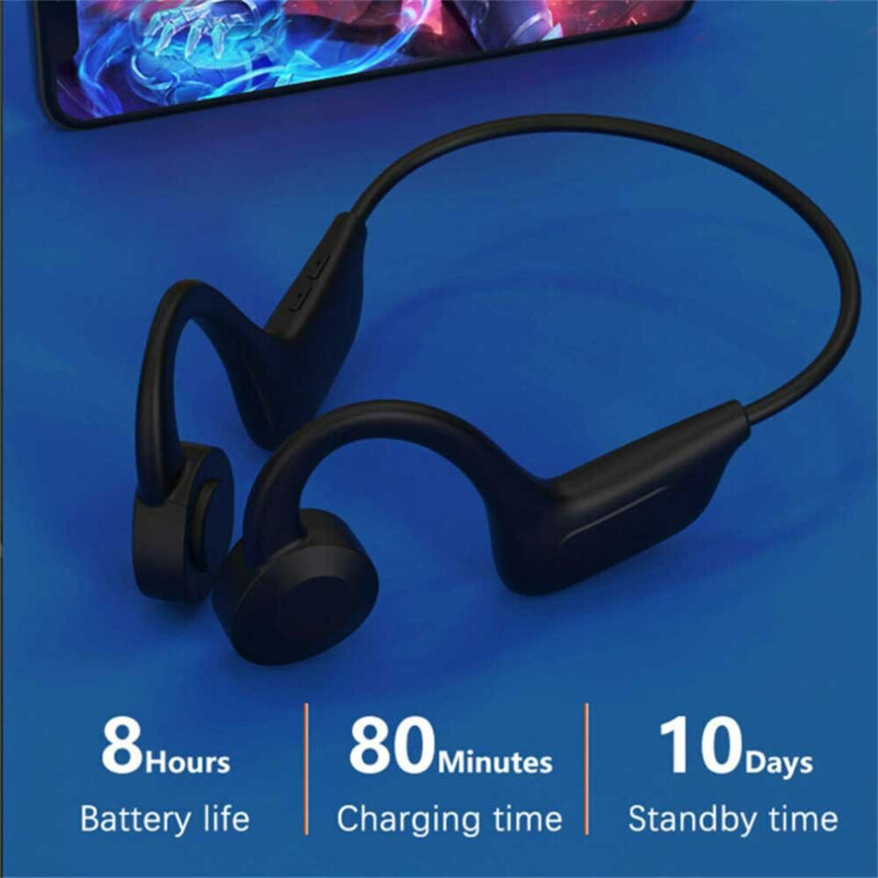 (Black) Wireless bluetooth Bone Conduction Earphones Stereo Earbuds Sport Waterproof Headphone Noise Cancellation Headset With Mic